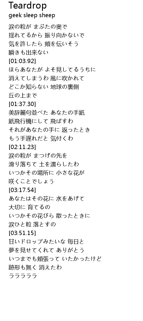 | [00:34.72] | 涙の粒が まぶたの奥で |