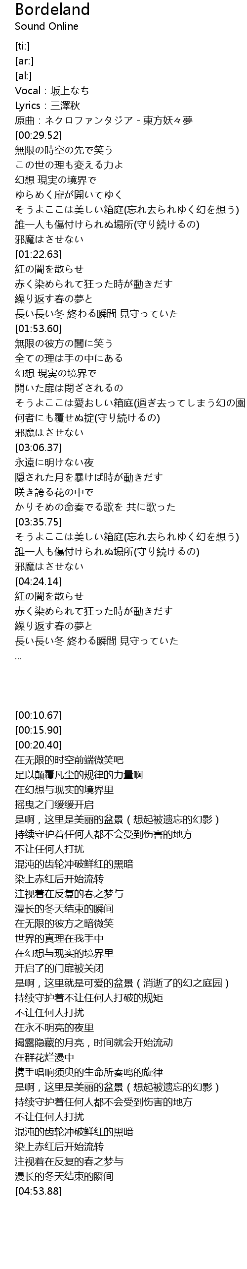 | [00:20.40] | 原曲:ネクロファンタジア-東方妖々夢 |