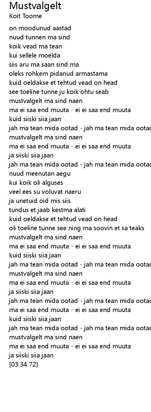 mustvalgelt ma sind naen |