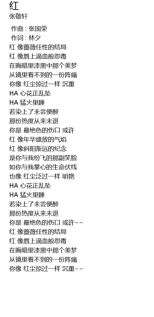 | [03:00.91] | 红 像蔷薇任性的结局 |