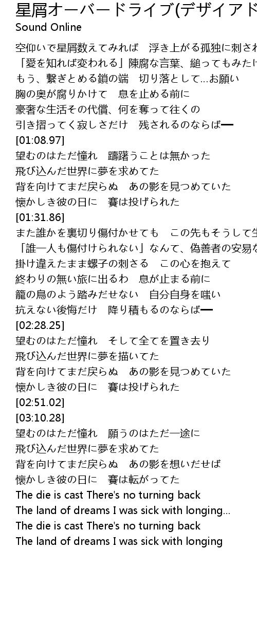 | [02:45.33] | 懐かしき彼の日に 賽は投げられた |