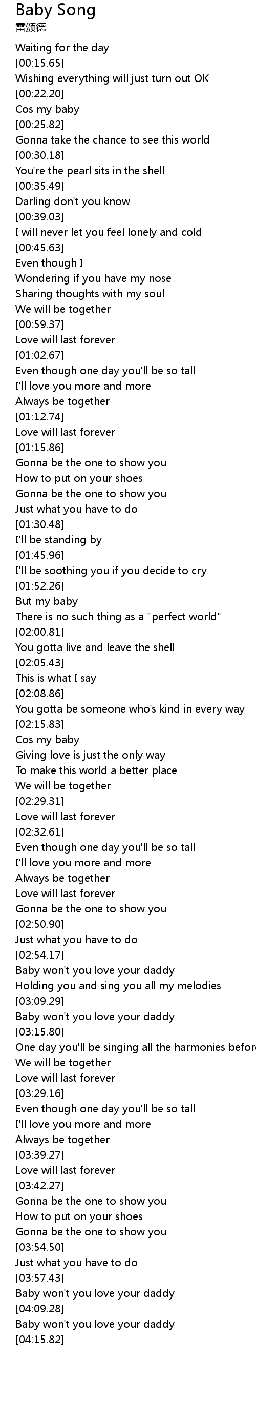 Baby won't you love your daddy |