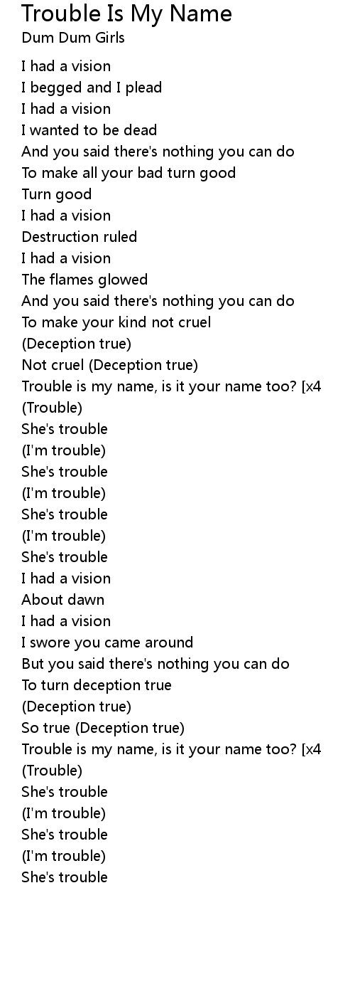 | [01:52.490]Trouble is my name, is it your name too? [x4] |