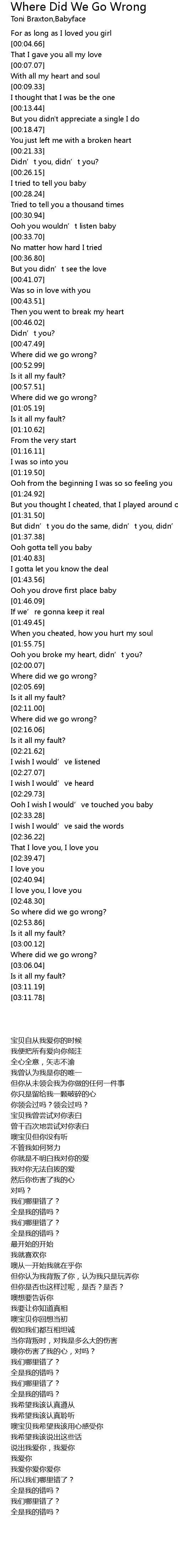| [03:00.47] | Where did we go wrong? |