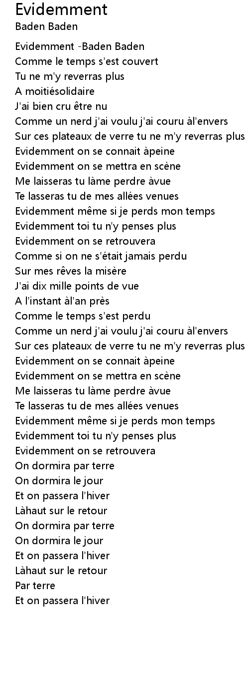 | [02:00.244] | Evidemment m me si je perds mon temps |