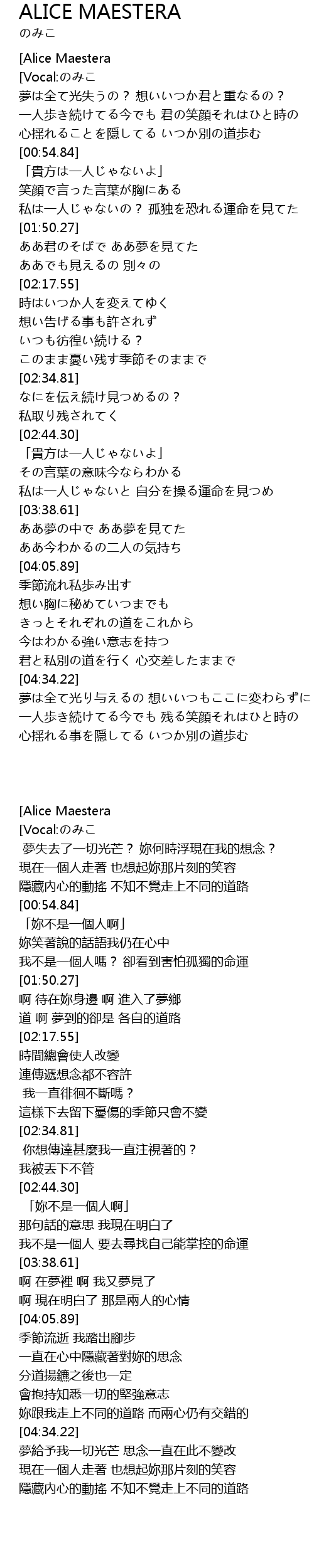| [00:00.92][Alice Maestera] | |