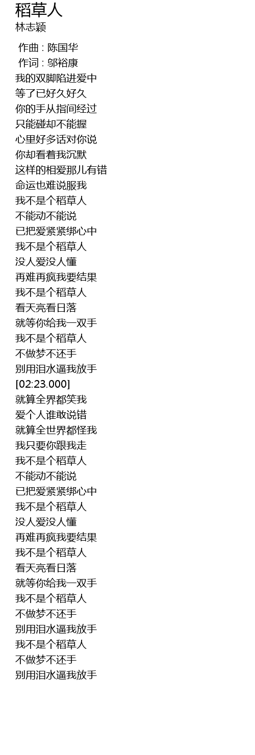 | [01:41.999] | 我不是个稻草人 |