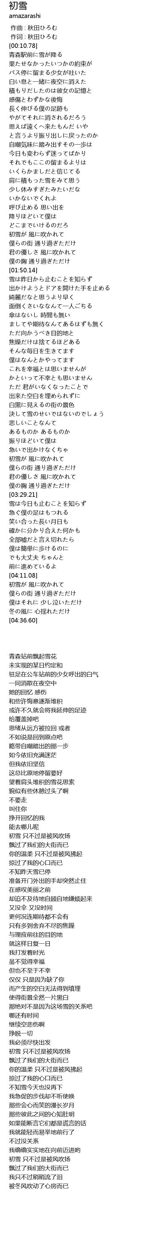 | [03:04.65] | 初雪が 風に吹かれて |
