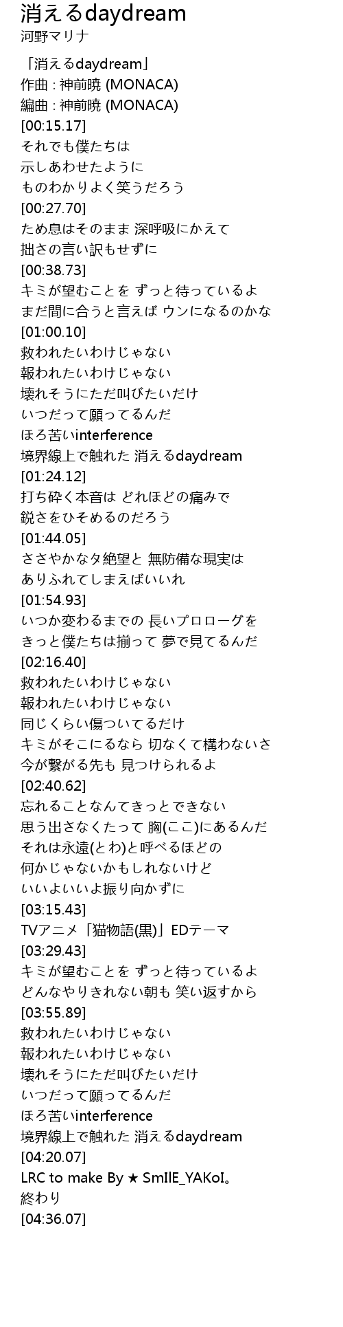 | [00:00.17] | 「消えるdaydream」 |
