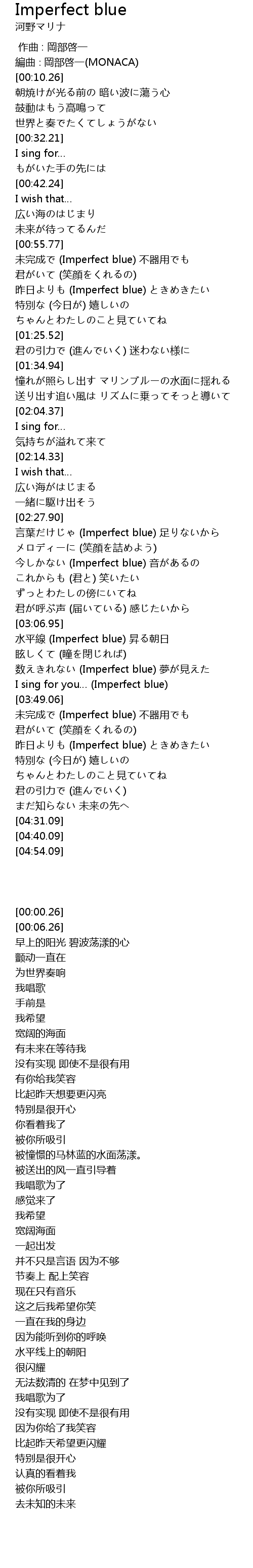 | [03:42.93] | I sing for you… (Imperfect blue) |