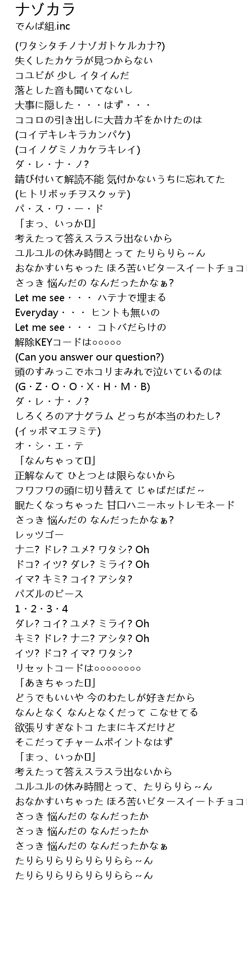 ナゾカラ  Lyrics