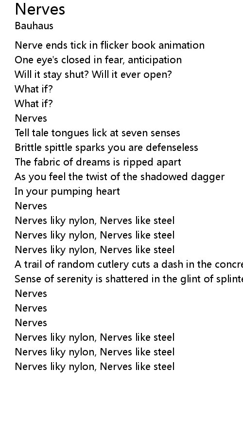 Nerves liky nylon, Nerves like steel |