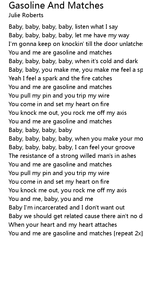You and me are gasoline and matches [repeat 2x] |