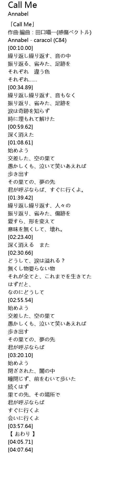 | [00:00.00] | 「Call Me」 |