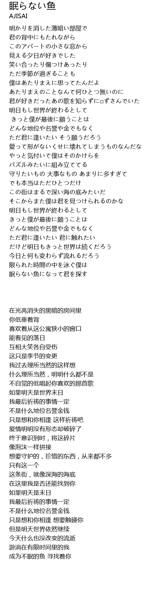 | [03:39.87] | 限られた時間の中を泳ぐ僕は |