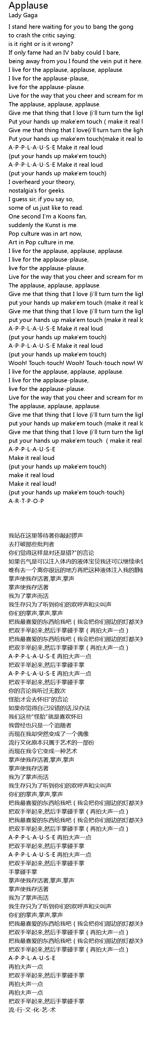 | [00:43.73] | I live for the applause-plause, |
