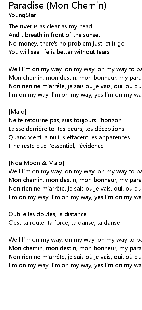 | Mon chemin, mon destin, mon bonheur, my paradise | |
