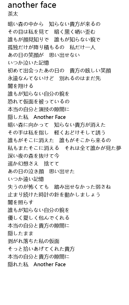 | [01:24.38] | 誰もが知らない自分の貌を |