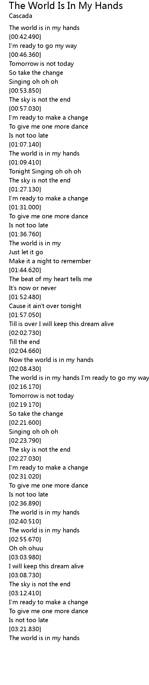 | [02:37.760] | The world is in my hands |