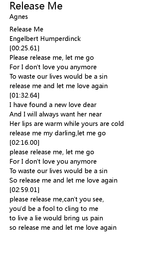 | [02:20.38] | please release me, let me go |