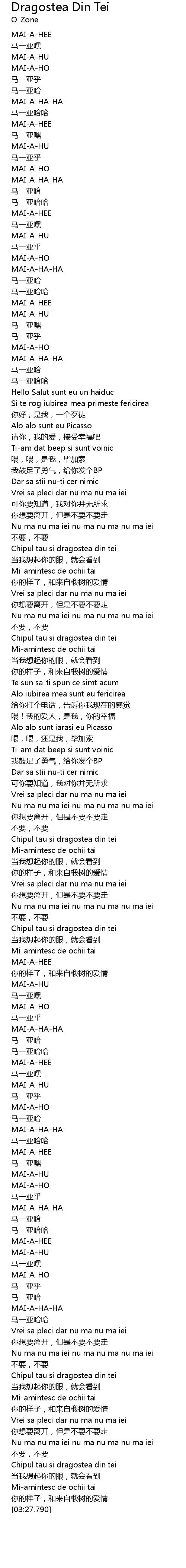 | [03:24.560] | Miamintesc de ochii tai |