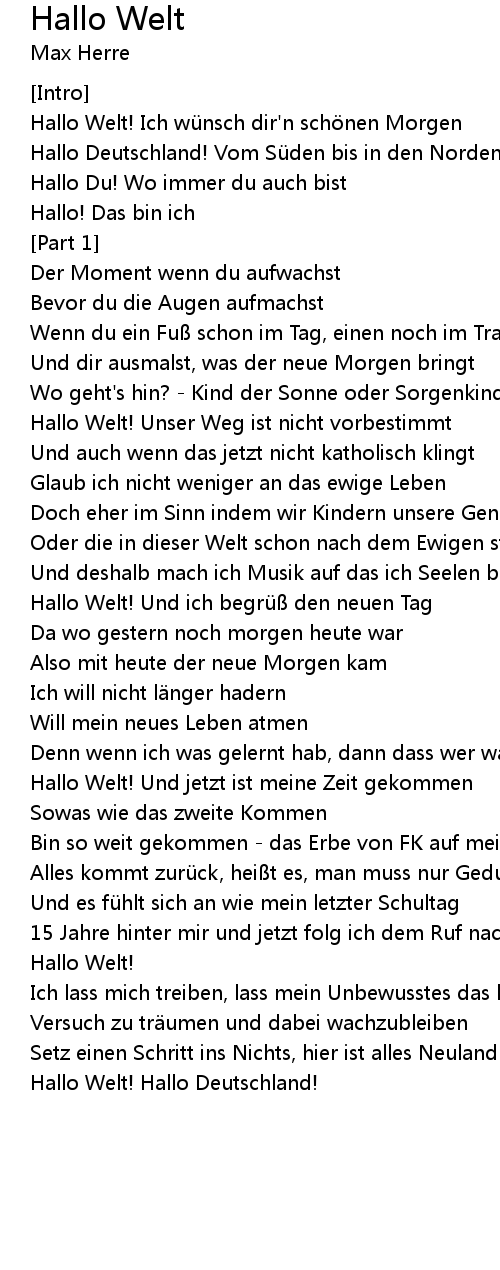 | Hallo Welt! Und ich begrüß den neuen Tag | |