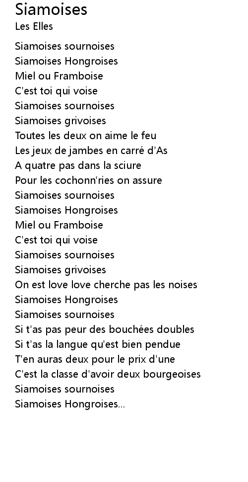 | Song | Siamoises |