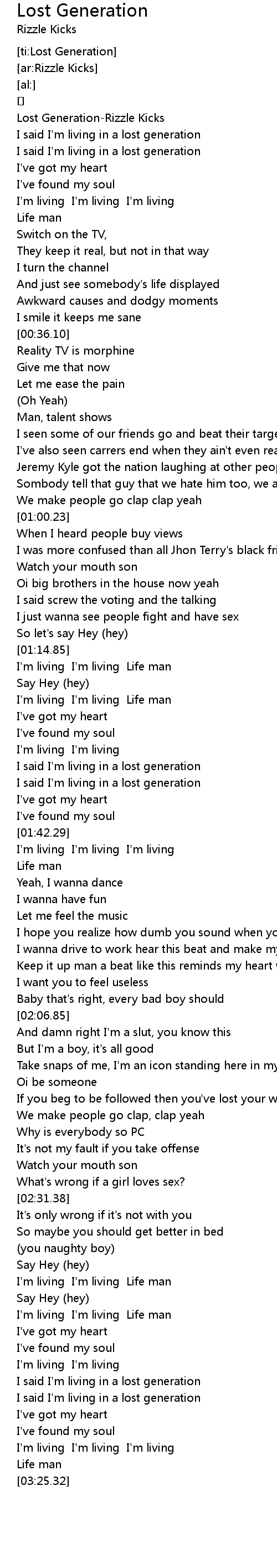 | [00:00.98] | Lost GenerationRizzle Kicks |