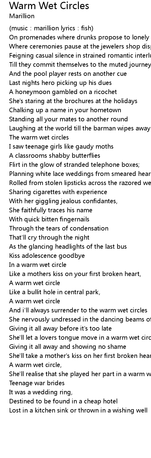 | She' ll let a lovers tongue move in a warm wet circle | |