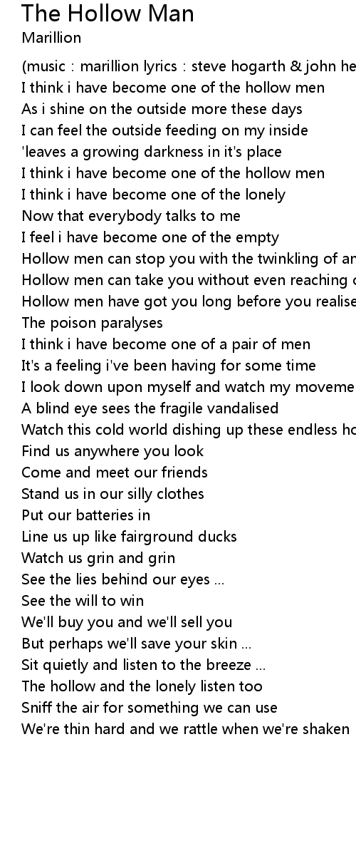 | I think i have become one of the hollow men | |