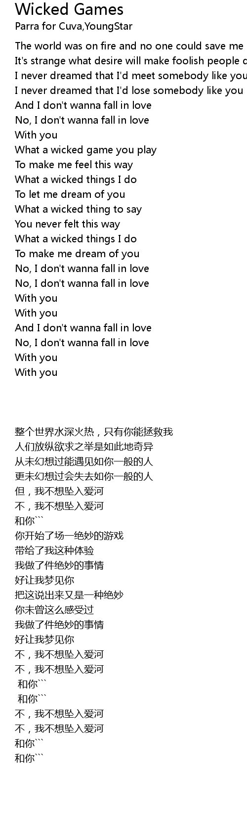 What a wicked game you play |