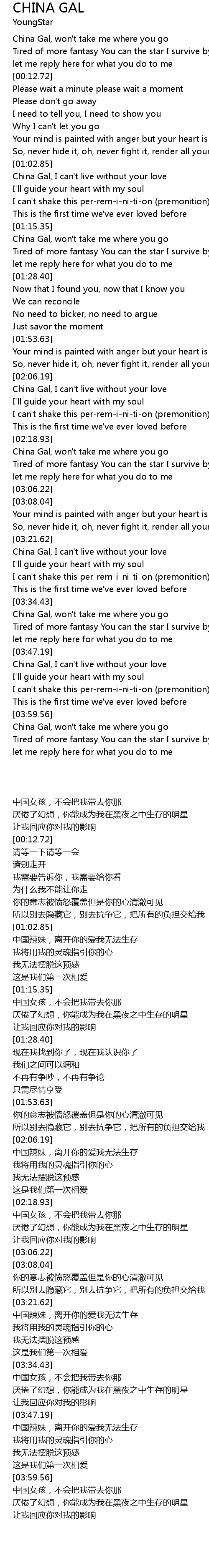 China Gal, I can't live without your love |