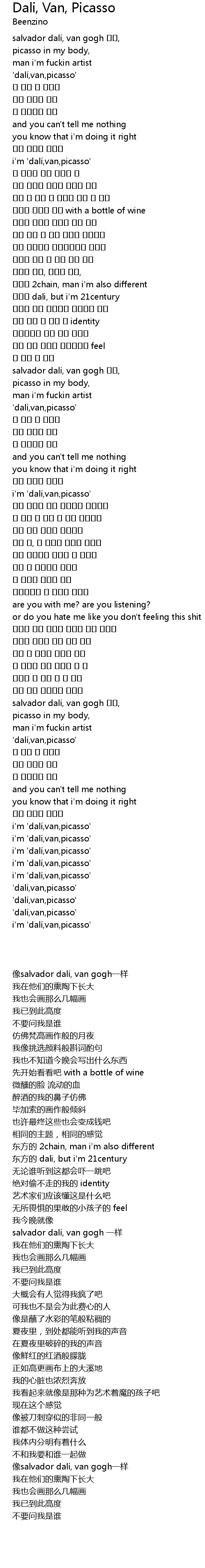 | [03:23.010] | i' m ' dali, van, picasso' |