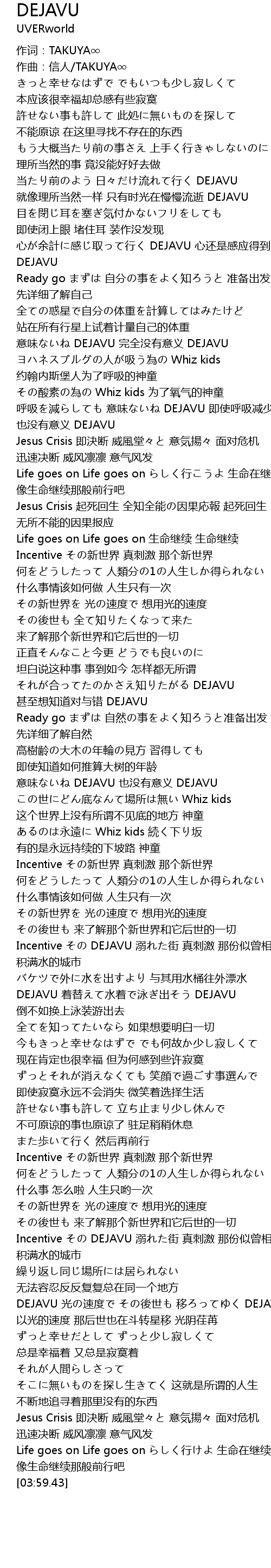 | [00:46.68] | hu xi jian yi wei DEJAVU ji shi hu xi jian shao ye mei you yi yi DEJAVU |