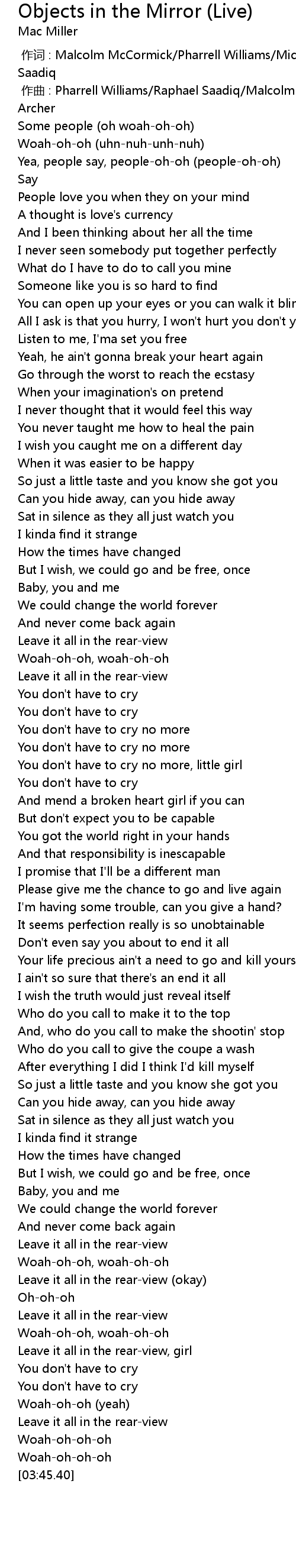 | [03:23.82] | Leave it all in the rear-view, girl |