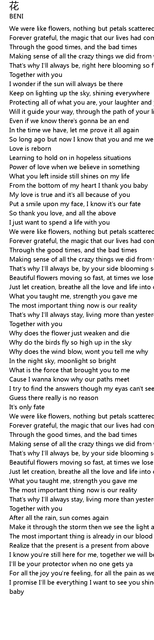 | [00:01.000] | We were like flowers, nothing but petals scattered through the air |