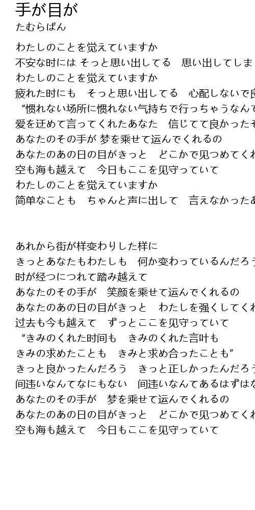 | あなたのあの日の目がきっと わたしを强くしてくれる | |