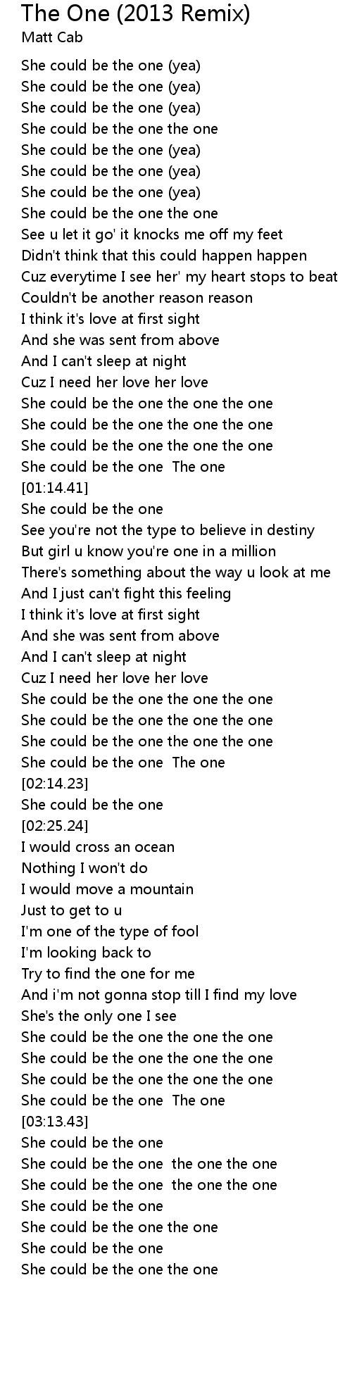 She could be the one the one the one |