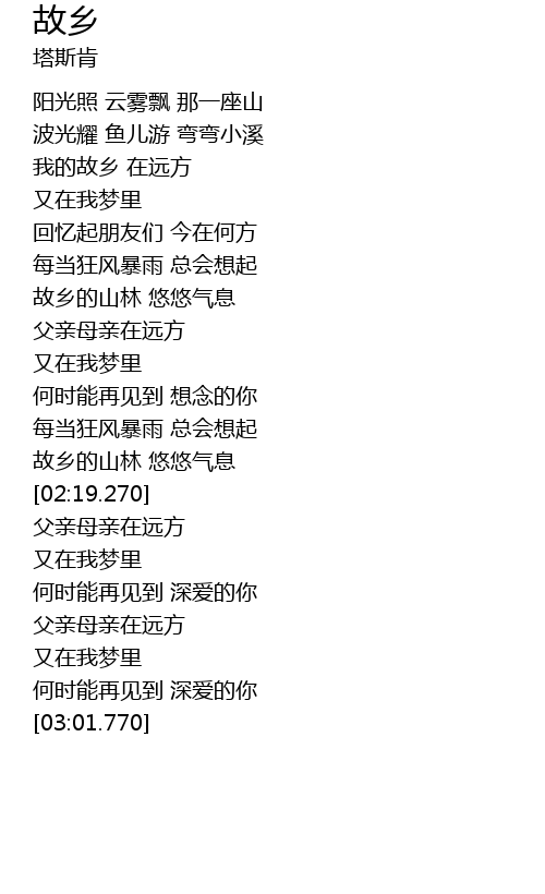 | [02:37.300] | fù qīn mǔ qīn zài yuǎn fāng |