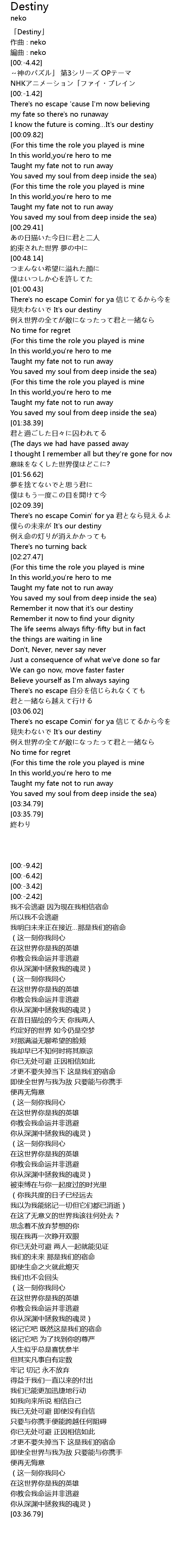 | [02:15.32] | pú wèi lái It' s our destiny |