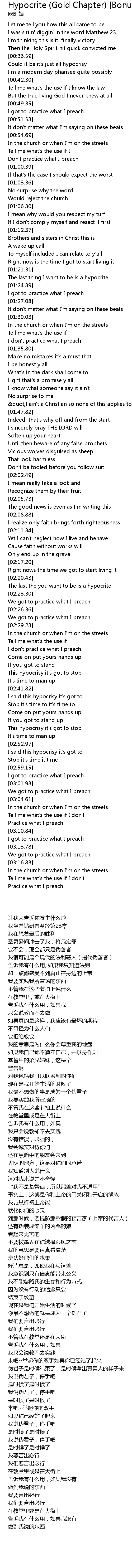 | [00:59.14] | Don't practice what I preach |