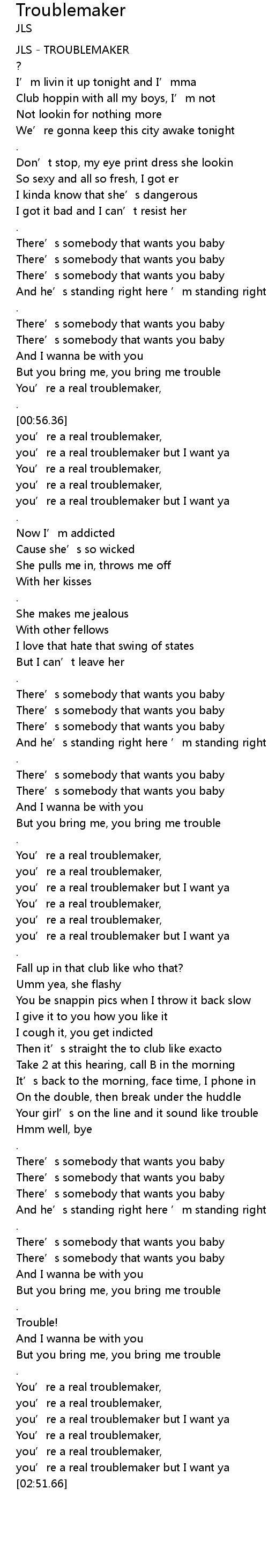 | [00:00.49] | JLS - TROUBLEMAKER |