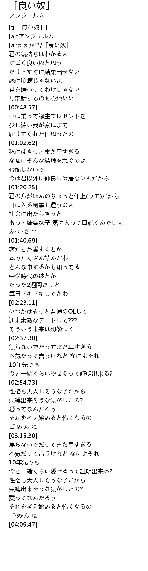 | [01:08.03] | なぜにそんな結論を急ぐのよ |