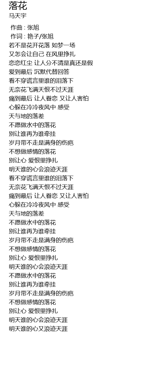 | [03:15.300] | 不想做感情的落花 |