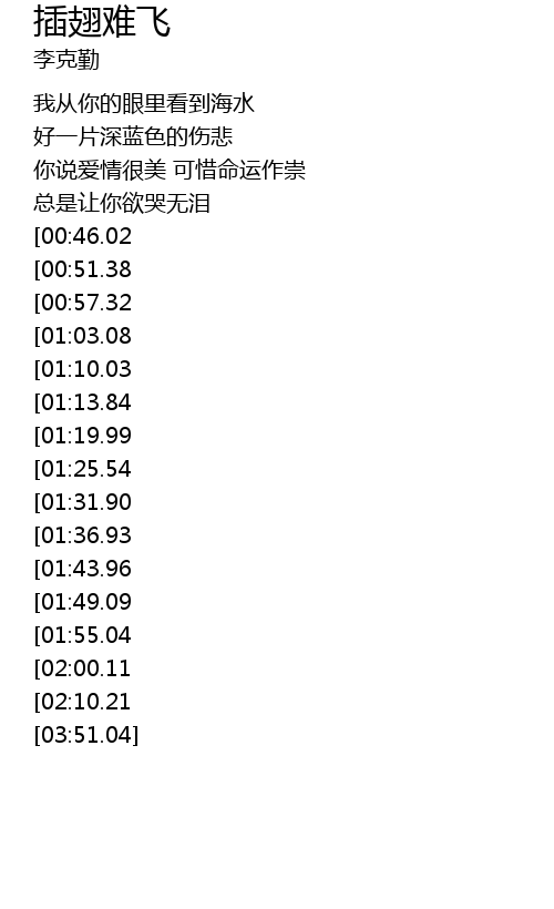 | [03:17.96][01:43.96] | 因为爱你的心插翅难飞 |