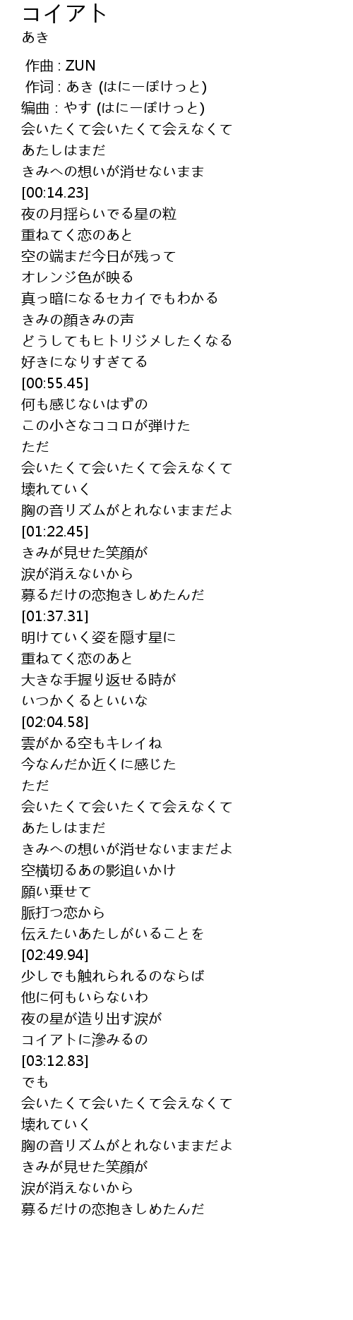 [00:00.13] 作词 : あき (はにーぽけっと)