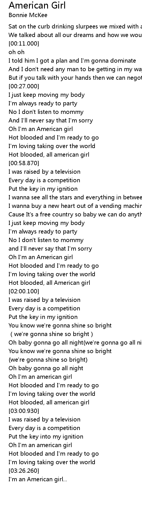 | [02:44.830] | Oh I' m an american girl |