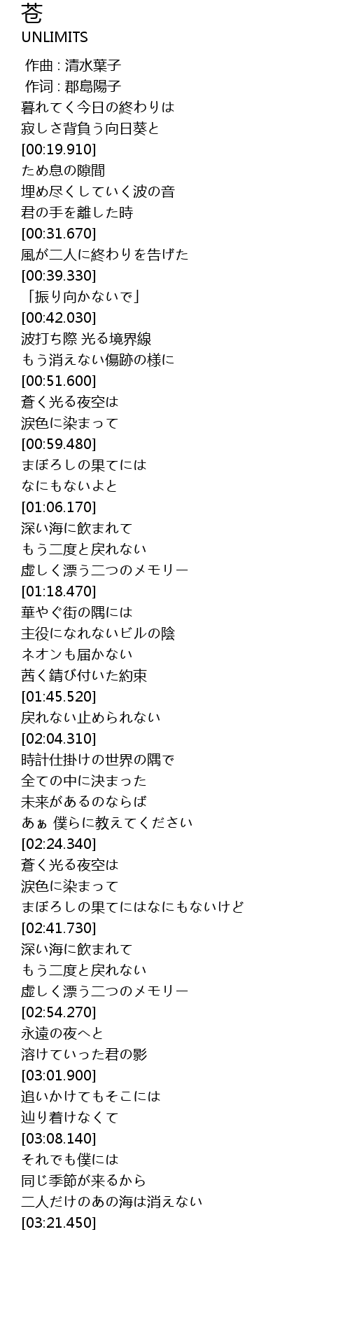 | [03:15.760] | 二人だけのあの海は消えない |