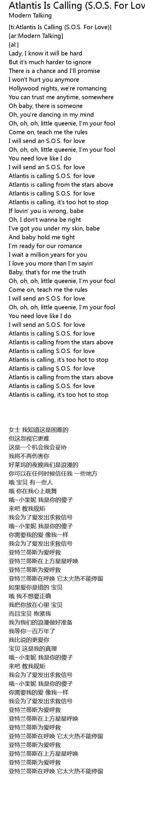 [ti:Atlantis Is Calling (S.O.S. For Love)] |