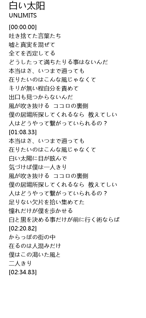 | [01:41.49] | 風が吹き抜ける ココロの裏側 |